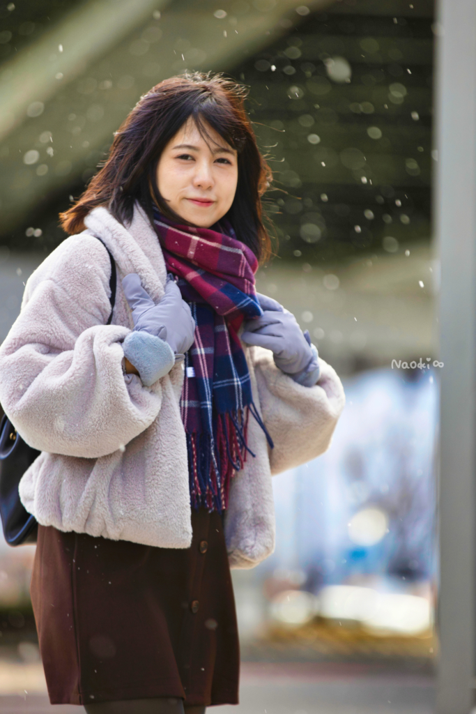 雪で、なつみ。さんが引き立って見える。