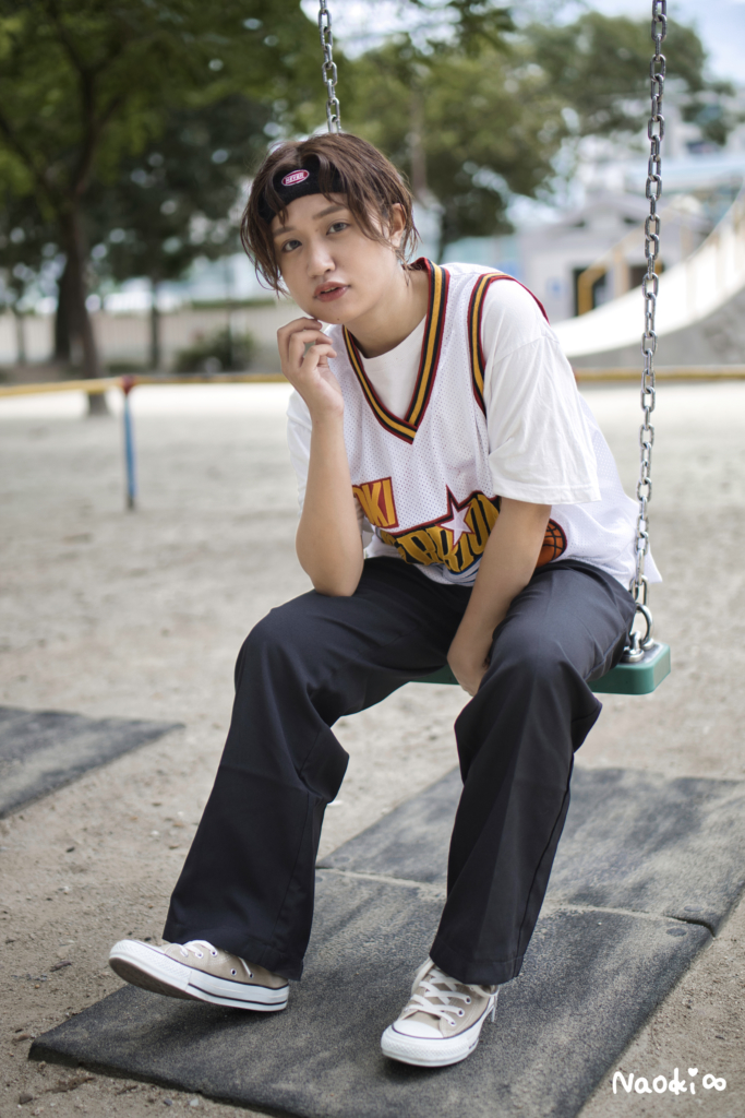 今回のボーイッシュな衣装姿は、過去に見たことがないです。